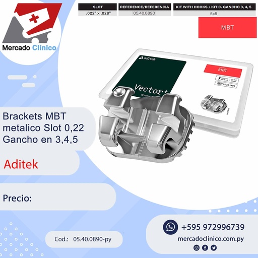 Brackets MBT metálico - Vector -Slot 022 c/ gancho 3,4,5 - Aditek