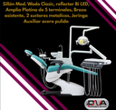 Sillon dental modelo Wodo Clasic, reflector Bi Led, amplia platina de 5 terminales, brazo asistente, 2 suctores metalicos, feringa auxiliar y control auxiliar (Woson)